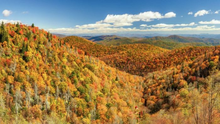 Visitors can start to see the colors change first in higher elevations and if you want to see the colors at their peak, be sure to plan your visit for mid to late October, as the shorter days and cooler nights are the perfect conditions for a vivid display of colors. Don’t forget to plan to make a few stops to appreciate the spectacular views from the various overlooks along the parkway.