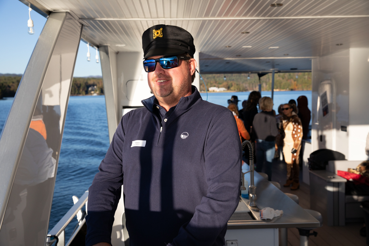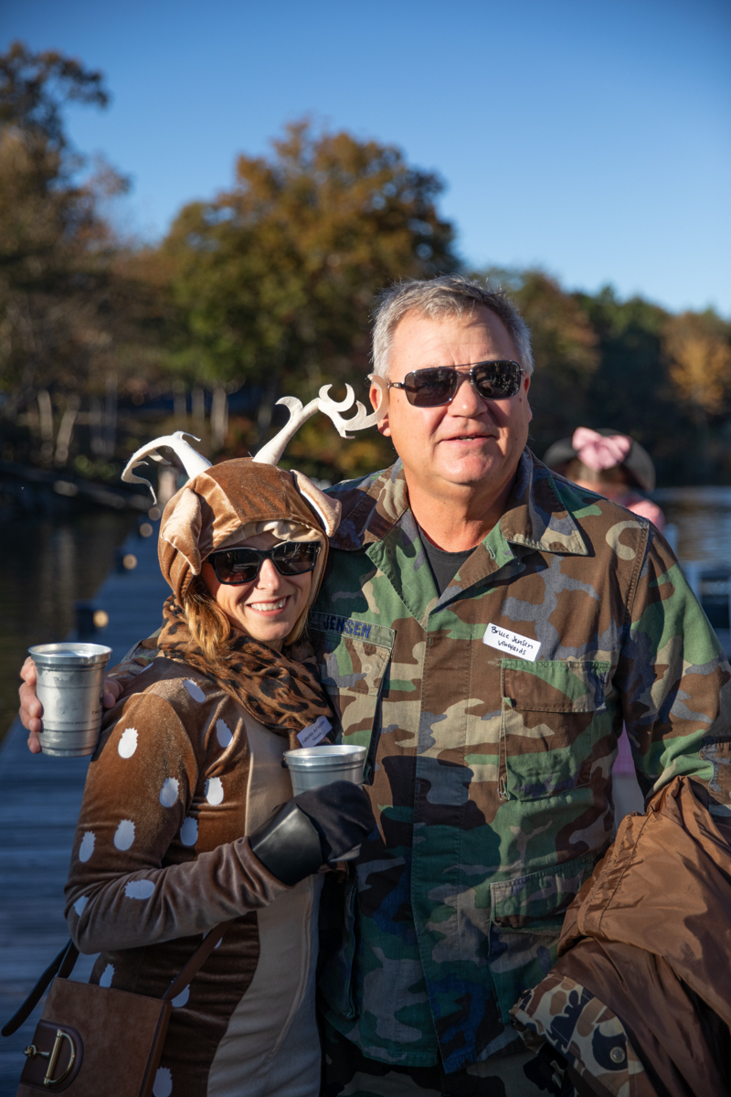 Taking off from the Keowee Vineyards Lakehouse, members, staff, and boat crew alike were dressed to the nines in Halloween costumes fit for the occasion. Fog, spooky music, black lights, and more awaited event attendees as they boarded the boat, where they were greeted with fresh cocktails, fun bites, and plentiful Halloween decor, including custom-made “Wanted” posters featuring various members of the Keowee Vineyards staff. The attendees mingled and showed off their costumes for each other while waiting for the cruise to begin.