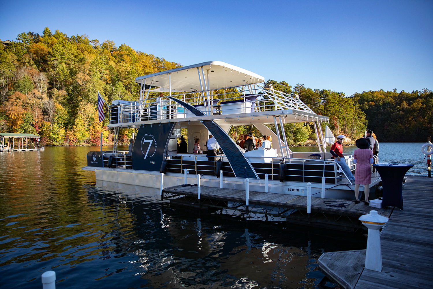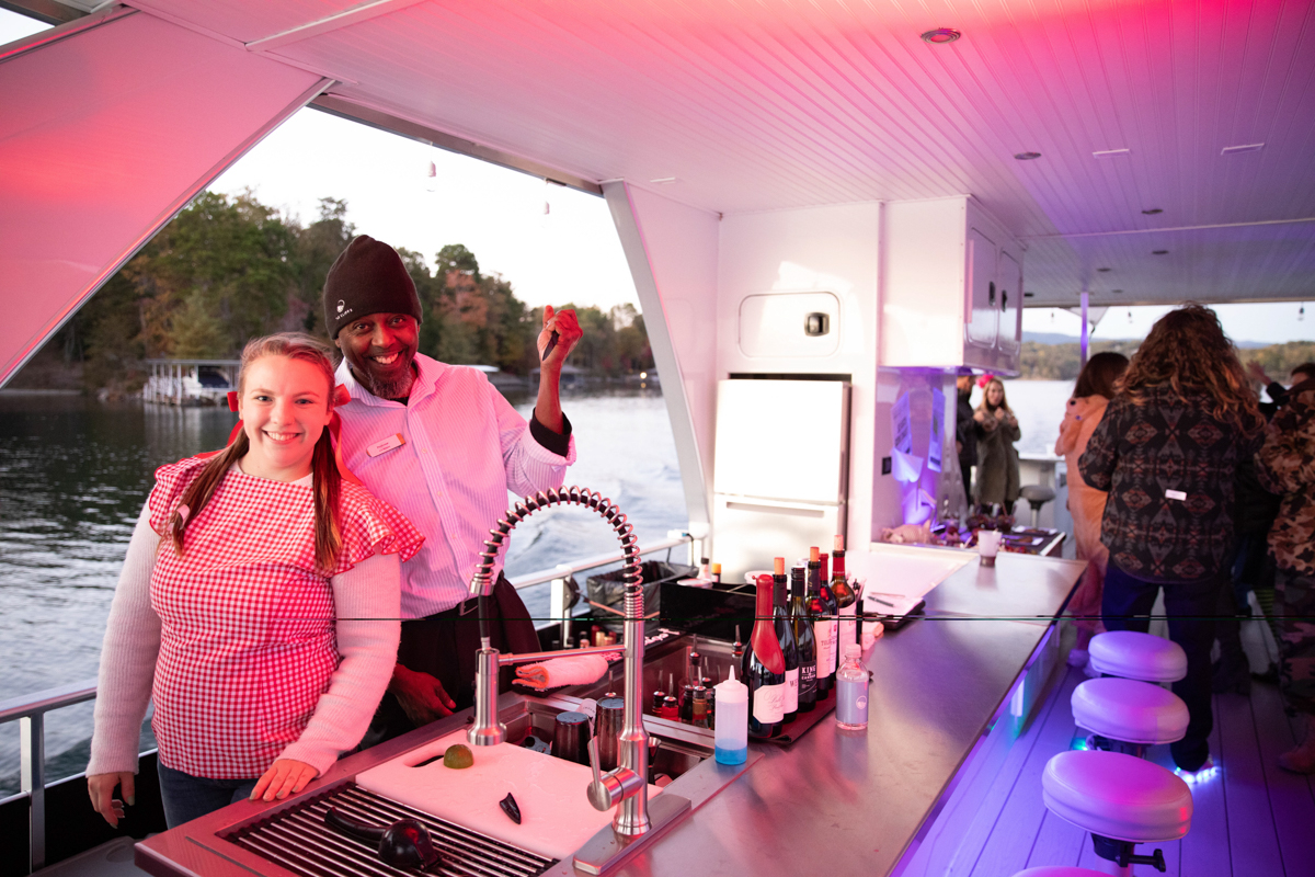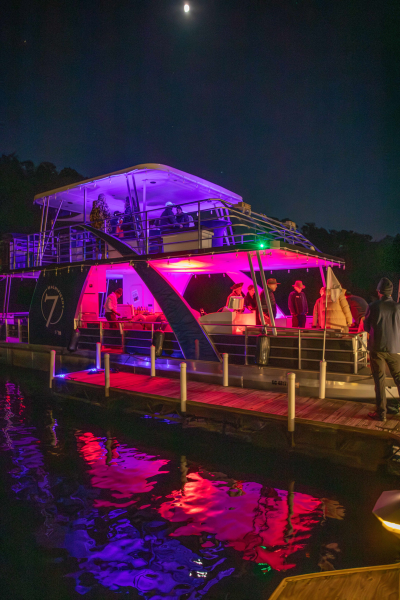 Taking off around sunset, the Magnificent 7 glided along Lake Keowee, treating members to stunning golden views of the shoreline and its picturesque scenery as the cruise sailed on. Members connected with each other, enjoying the culinary offerings, and dancing along to the party’s music as the laughter-filled evening continued. Landing back at The Lakehouse once the moon had risen, the Killer Cruise proved a perfect way to spend the festive evening.
