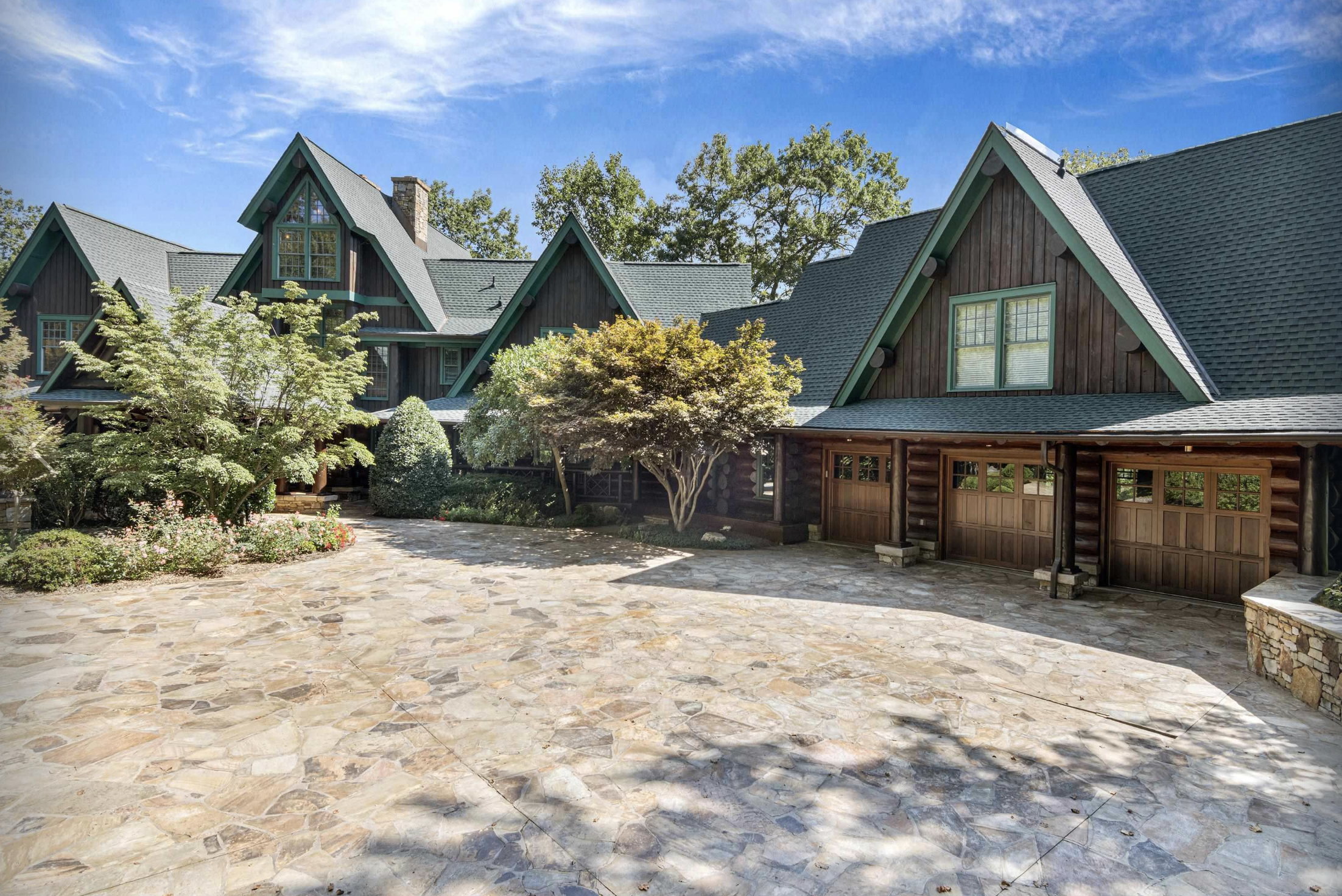 Once you arrive at the serene, private mountain oasis, your eyes are immediately drawn to the flagstone pavers meticulously laid throughout the level driveway and courtyard. The path leads to an impressive port-cochere, shielding you from the elements as you enter the front door. Utilizing the Swedish Cope construction technique, the property was constructed to perfection over a three-year period. The western red cedar logs harvested from Whistler, British Columbia are hand-scribed together to combine for superior strength and insulating qualities.