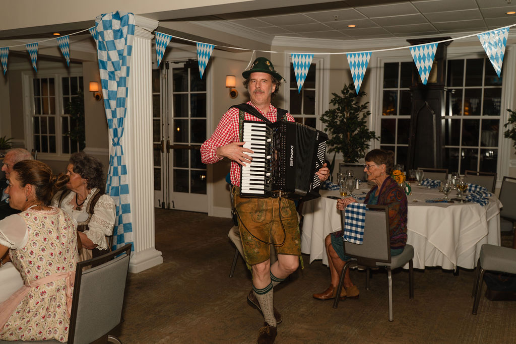 The event featured Biergarten-style seating, perfect for dining on the traditional German cuisine prepared and served by the Valley culinary team. Coupled with the menu, The Foothills Oompah Band led members in song and dance all evening, with German sing-along songs, yodeling, and a special dance hit among attendees, the chicken dance.
