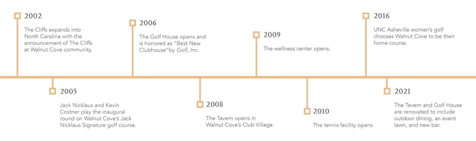 When The Cliffs at Walnut Cove opened its Jack Nicklaus Signature Course in 2005, it did so with a memorable pairing on the first tee: Jack Nicklaus and actor Kevin Costner. The two played the ceremonial opening round together, marking the official debut of the highly anticipated course.