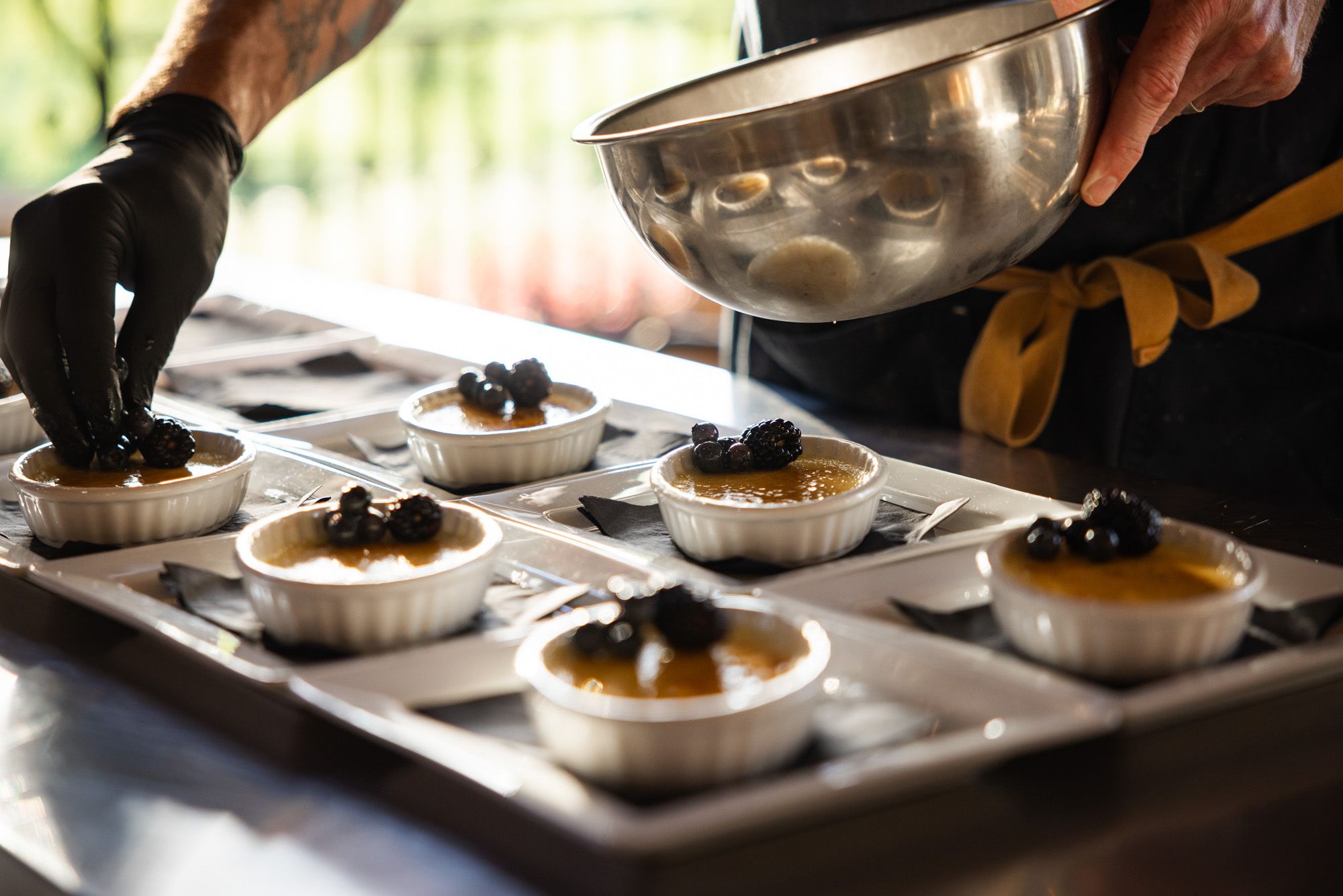 Next, diners were treated to Black Sea Bass served with forbidden rice and wilted greens, topped with a luscious beurre Blanc sauce. The pairing of a Lumen Pinot Gris complimented the rich flavors, enhancing the dish’s delicate textures and smoky undertones from the wood-fired oven.