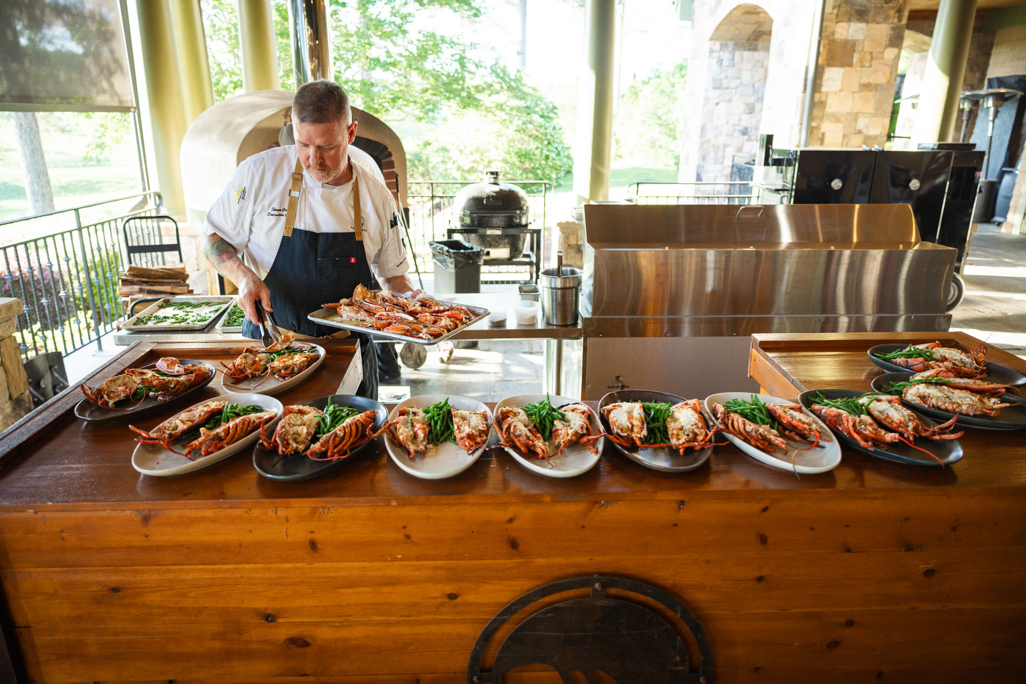 Featuring an exclusive four-course dinner crafted in a wood-fired oven and meticulously paired with fine wines, this year’s Lobster Dinner was a culinary delight like no other. Limited to just 12 diners, this outdoor event combines gourmet cuisine with an intimate ambiance on the outdoor porch at The Cliffs at Keowee Falls.