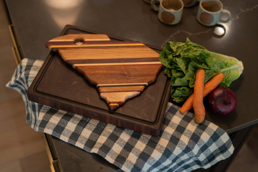 END GRAIN WALNUT & SOUTH CAROLINA SERVING BOARDS by Ballew Woodworks—these boards, made from locally-sourced wood, provide a beautiful canvas for displaying food. The family-run business based in Inman and Greer, South Carolina also offers pepper mills, dessert stands, and custom furniture. You can find them at artisan markets, including the TD Saturday Market in Greenville, South Carolina and at ballewwood.com.