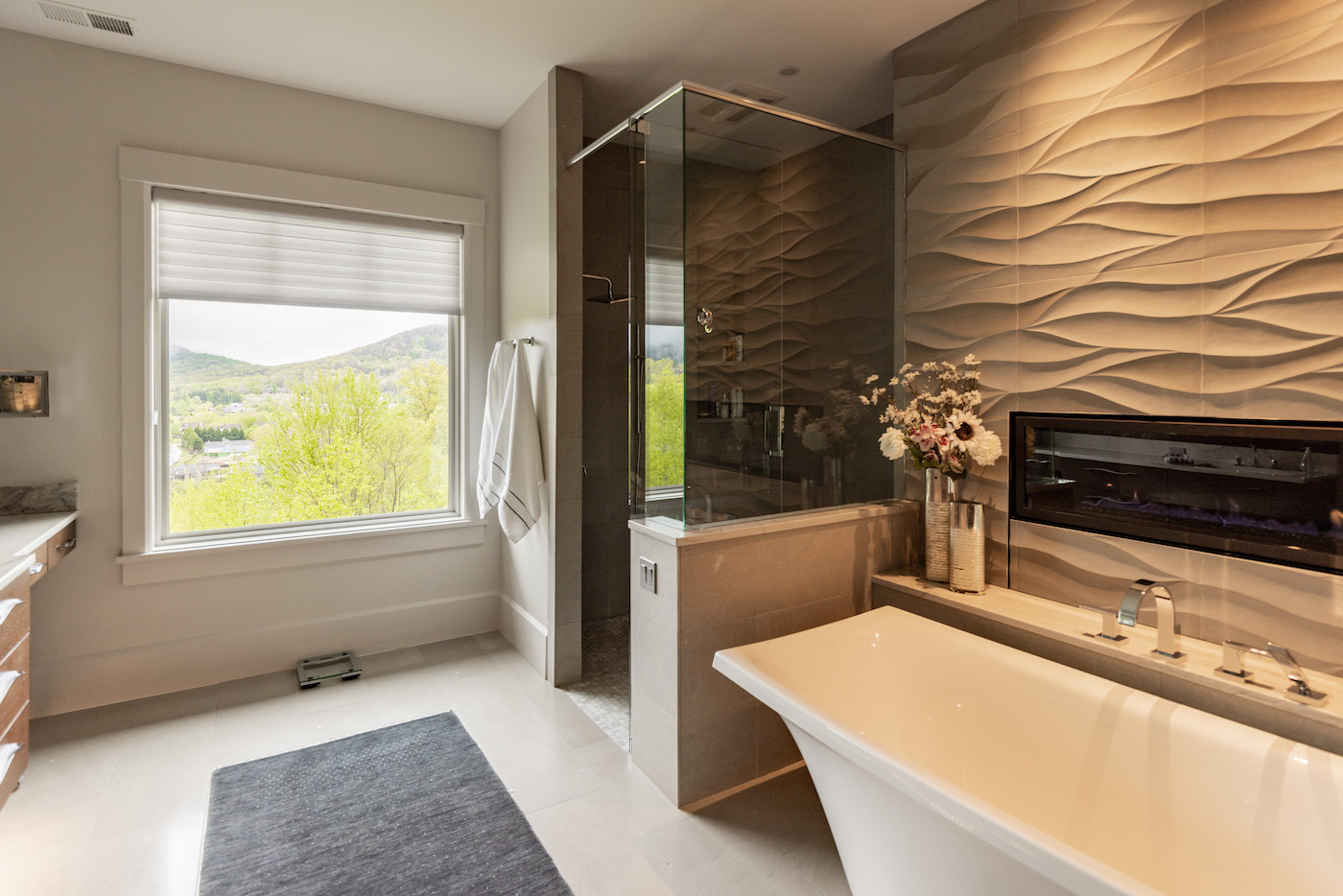 “When you open the front door, we have a huge floor-to-ceiling window that welcomes you into the sweeping view ahead. You can see the twists of the Blue Ridge Parkway, and at night, the lights of the cars going up and down. You can see mountains all the way to the far horizon, and glittering points of light where houses dot the landscape, like a little village,” Sipo says.