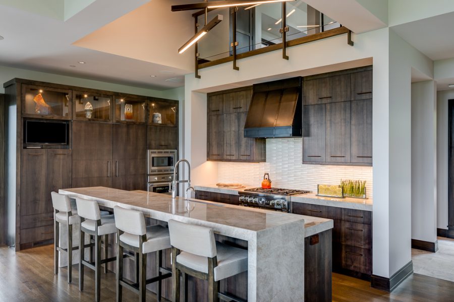In this home by Glennwood Custom Builders, the uniform use of natural materials and complementary colors blend seamlessly with the surrounding environment. The details on all three levels remain simple, elegant, and functional. One of the highlights is the loft’s “Eagles Nest Den” and the terrace beneath which you can enjoy sweeping mountain views.